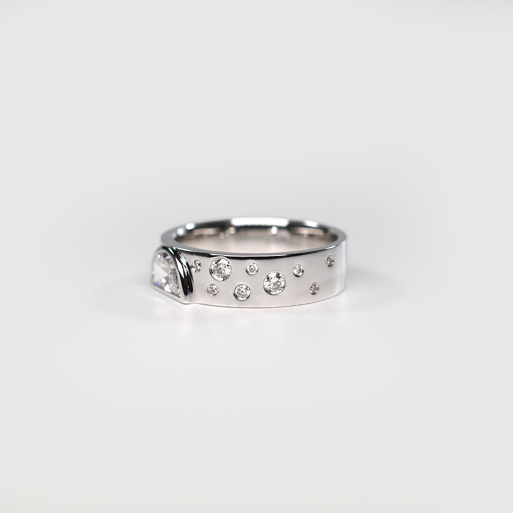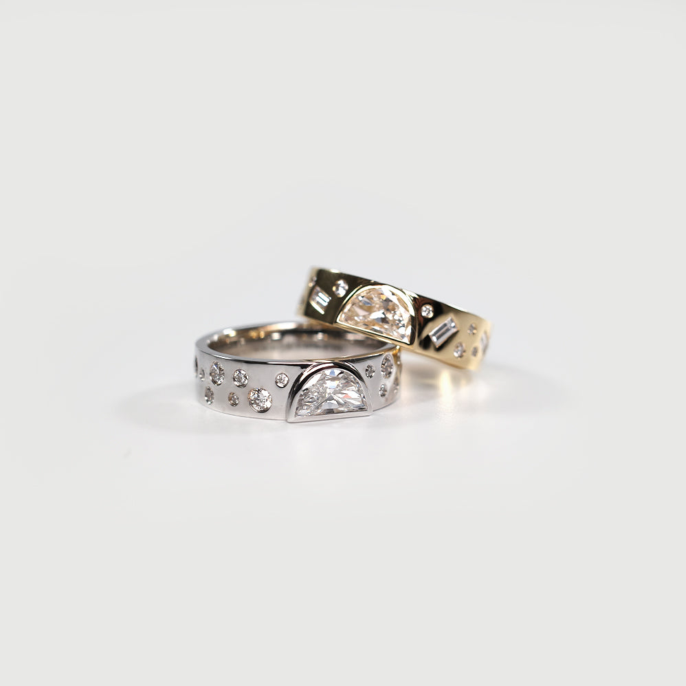 Our lab diamond wedding bands are the perfect complement to our engagement rings. Designed with the same commitment to sustainability, our wedding bands come in various styles, from minimalist designs to diamond-encrusted pieces. These rings symbolize your eternal love and commitment while making a statement about your values.