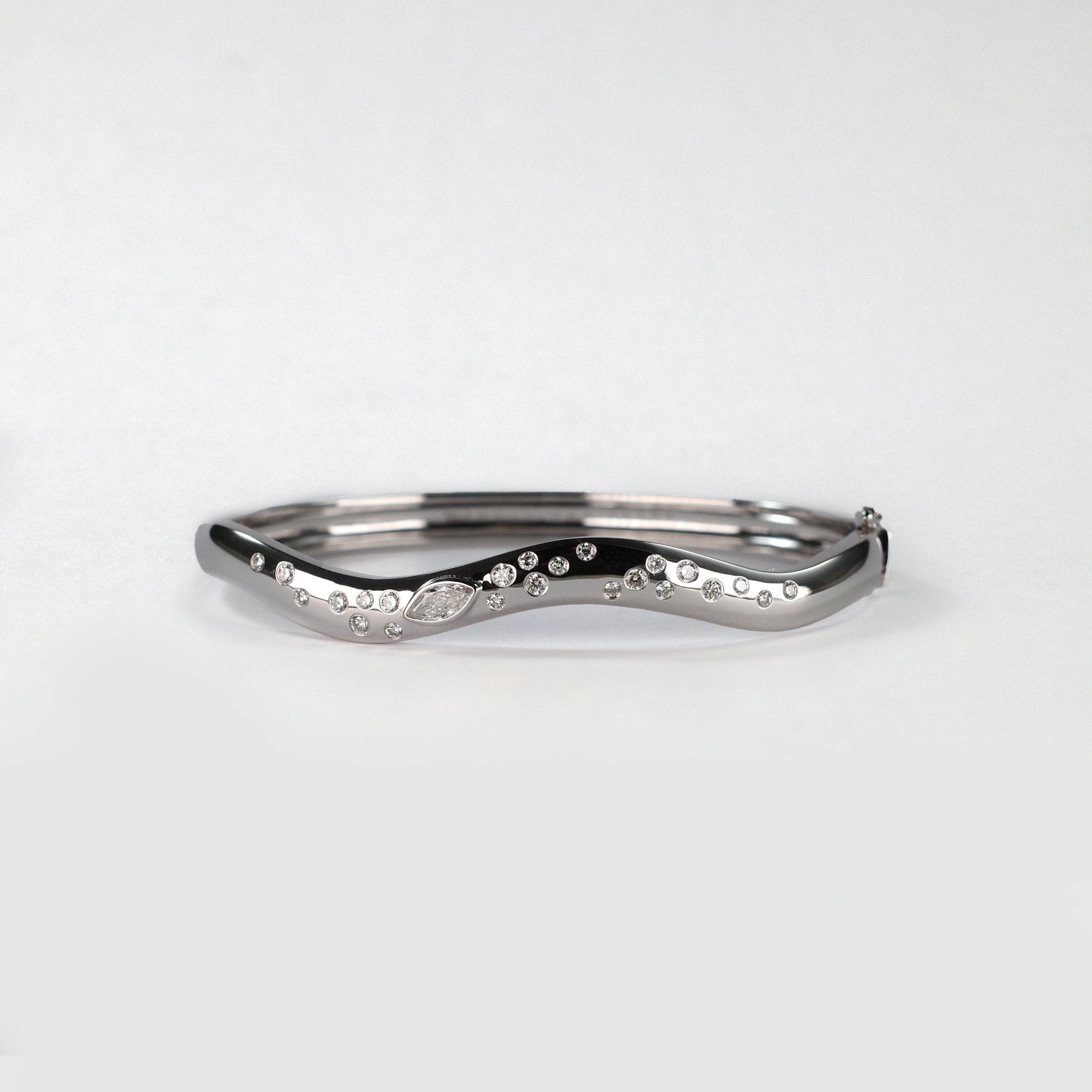 A modern piece from the WAVE collection. Inspired by the sparkles on the sea waves when the sunlight hits, the WAVE collection captures the simplicity of movement and brings out the shining moments of the waves vividly and lively.