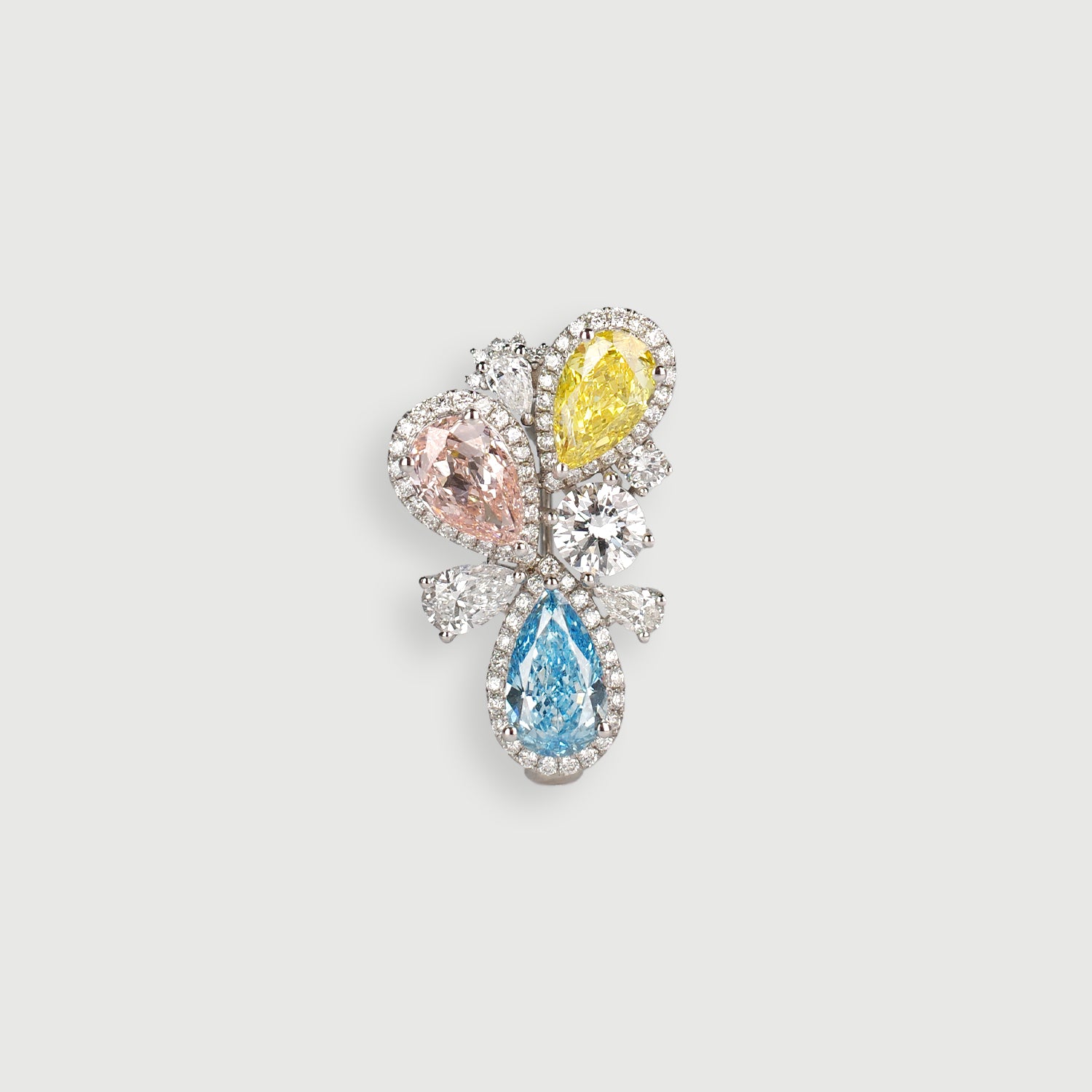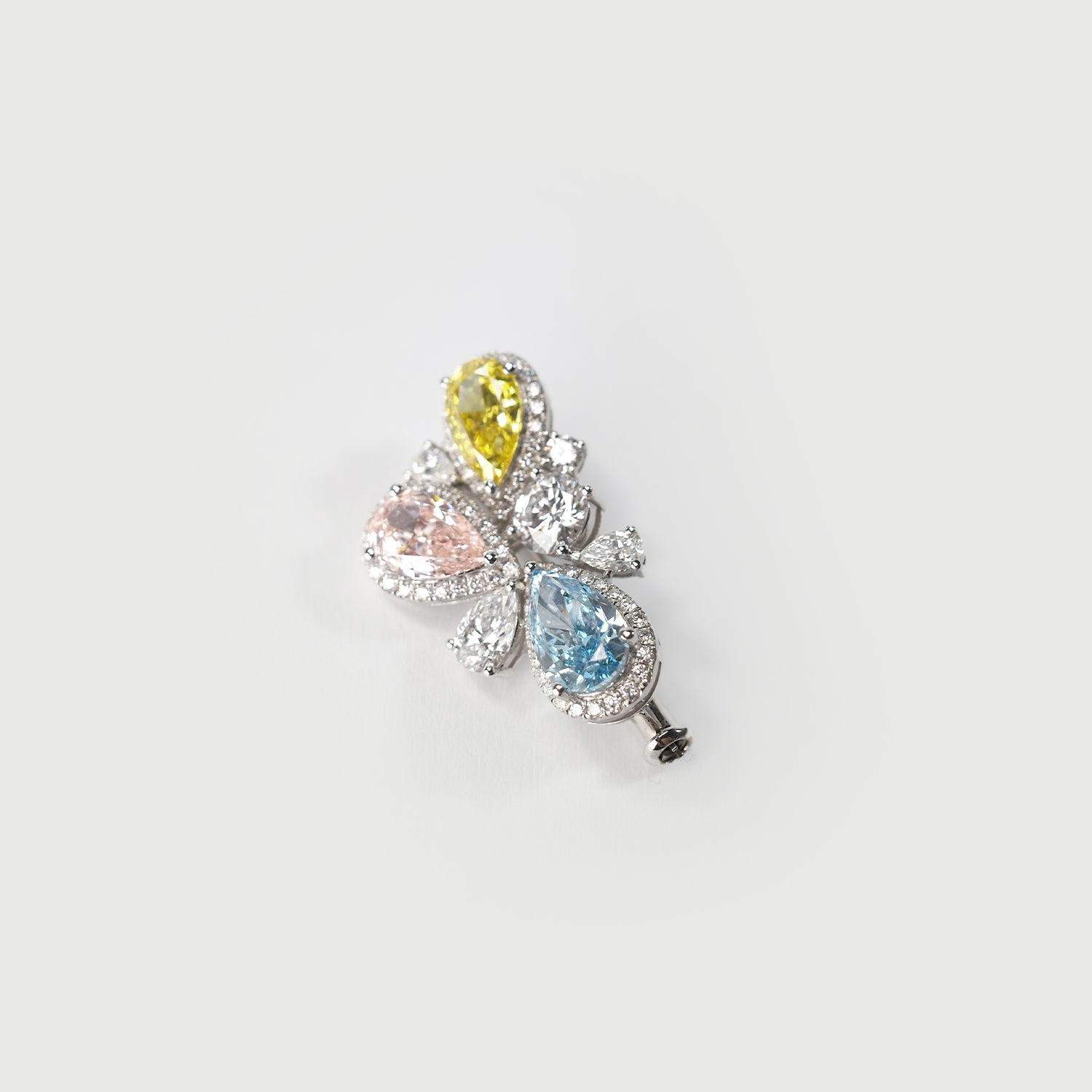 A bespoke brooch, inspired by artists' palettes, unites the brilliance of pink, blue, and yellow diamonds to embody the essence of primary colors. More than a jewel, it whispers a timeless message: hold fast to your dreams and dare to chase them.
