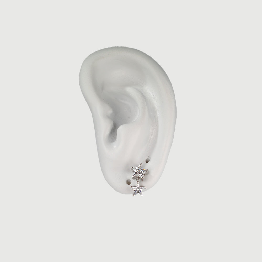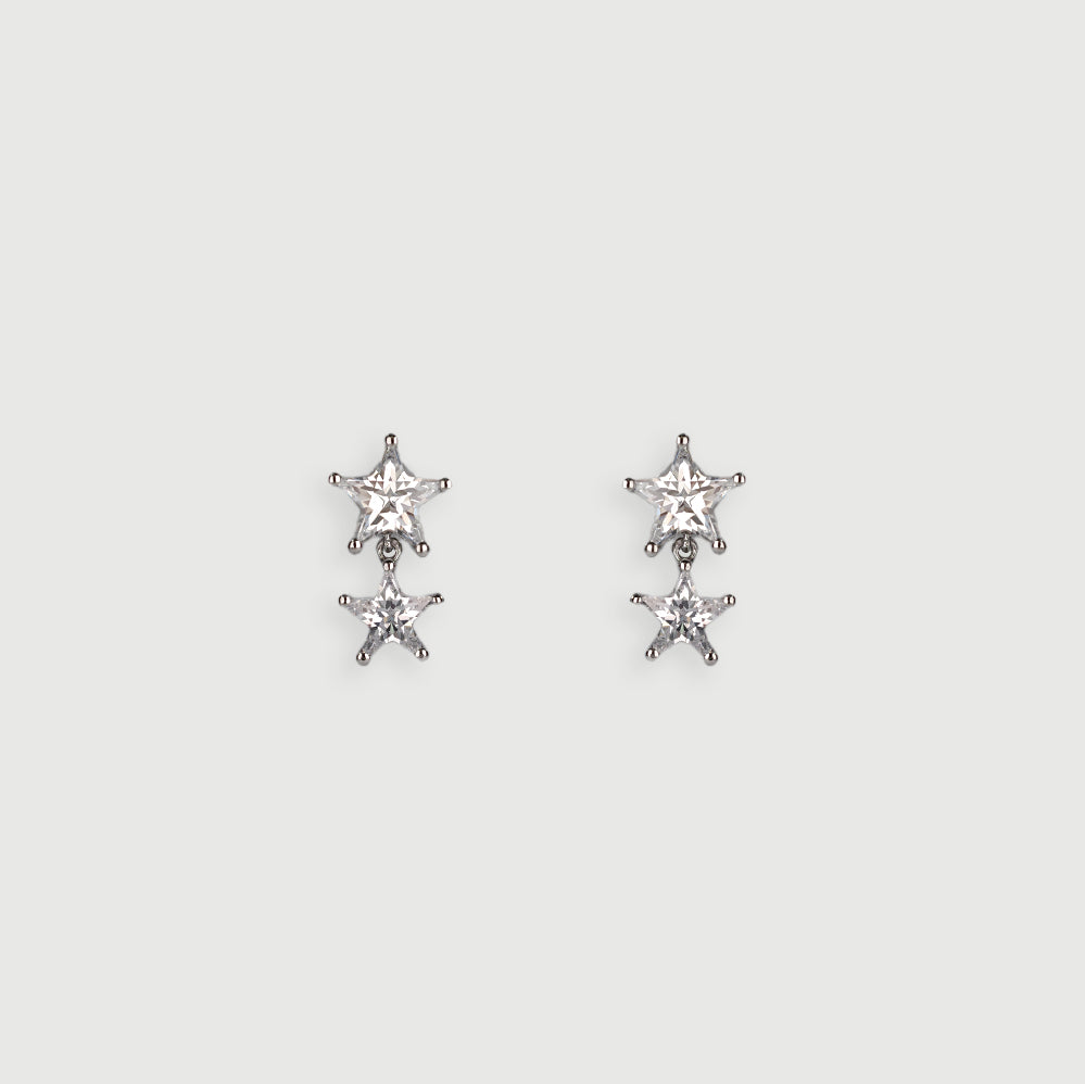 Inspired by childhood dreams of wishing upon the stars, these earrings feature two luminous star-shaped stones, linked together to symbolize the connection between hopes and the infinite sky.