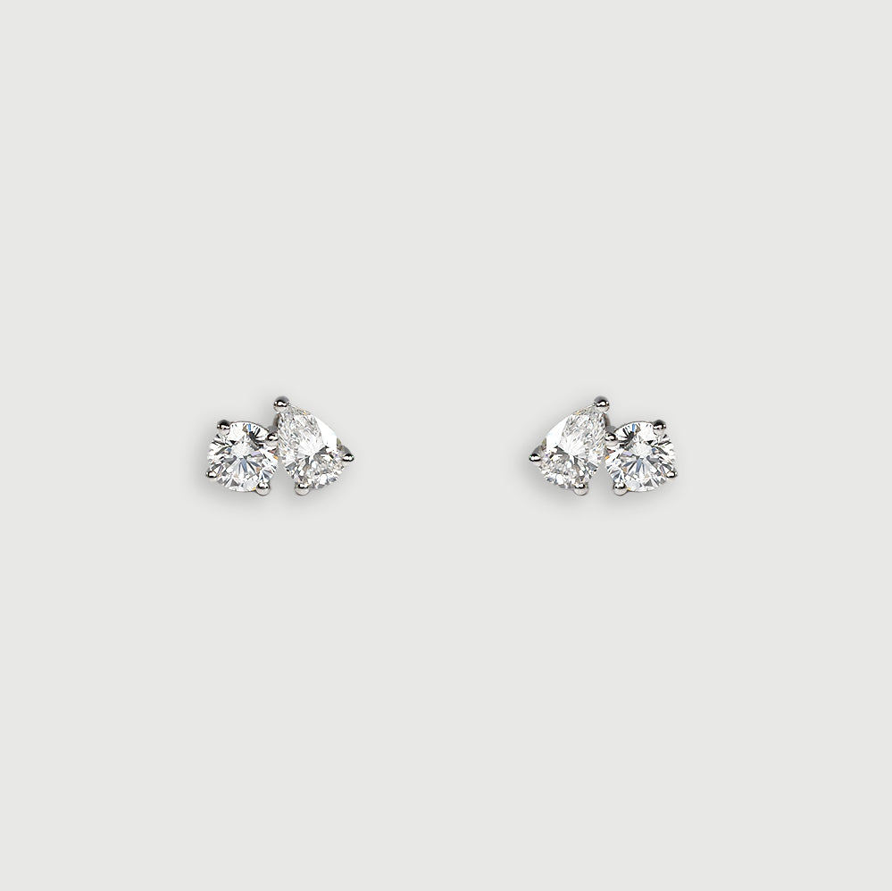 Nova - Toi et Moi Diamond Earrings - Round & Pear